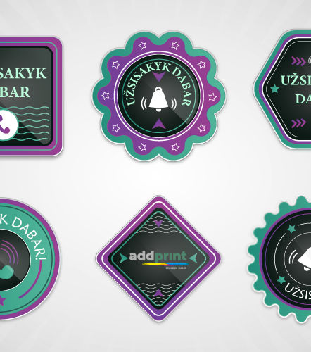 Products of paper or other material that are pasted on various surfaces are usually called stickers. Any information can be displayed on the sticker - picture, text, barcode, logo, etc. Stickers can be of various sizes and used practically anywhere, for example windows, cars, children's educational books, advertising stands. You can find more information on our page www.stickylabels.lt